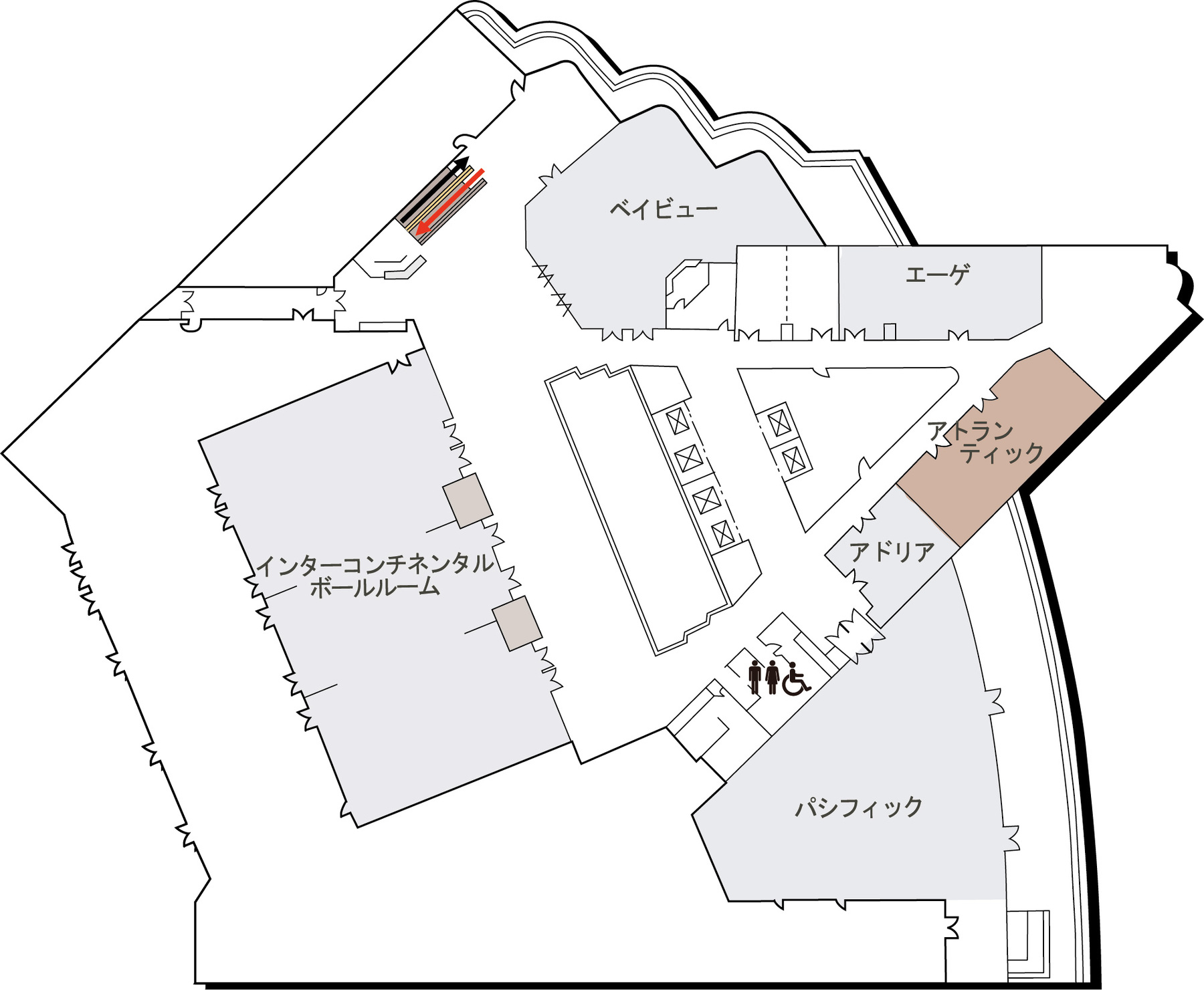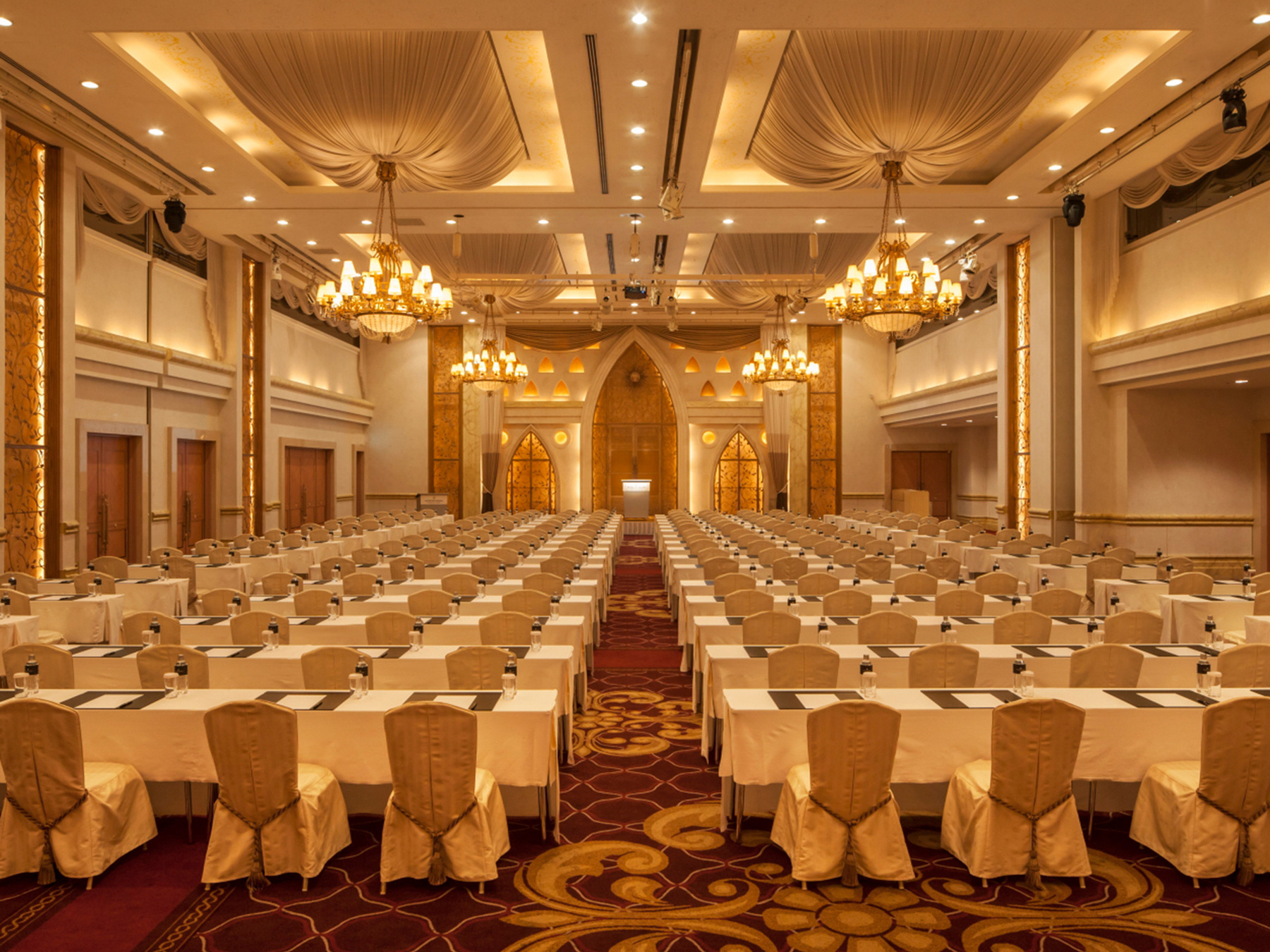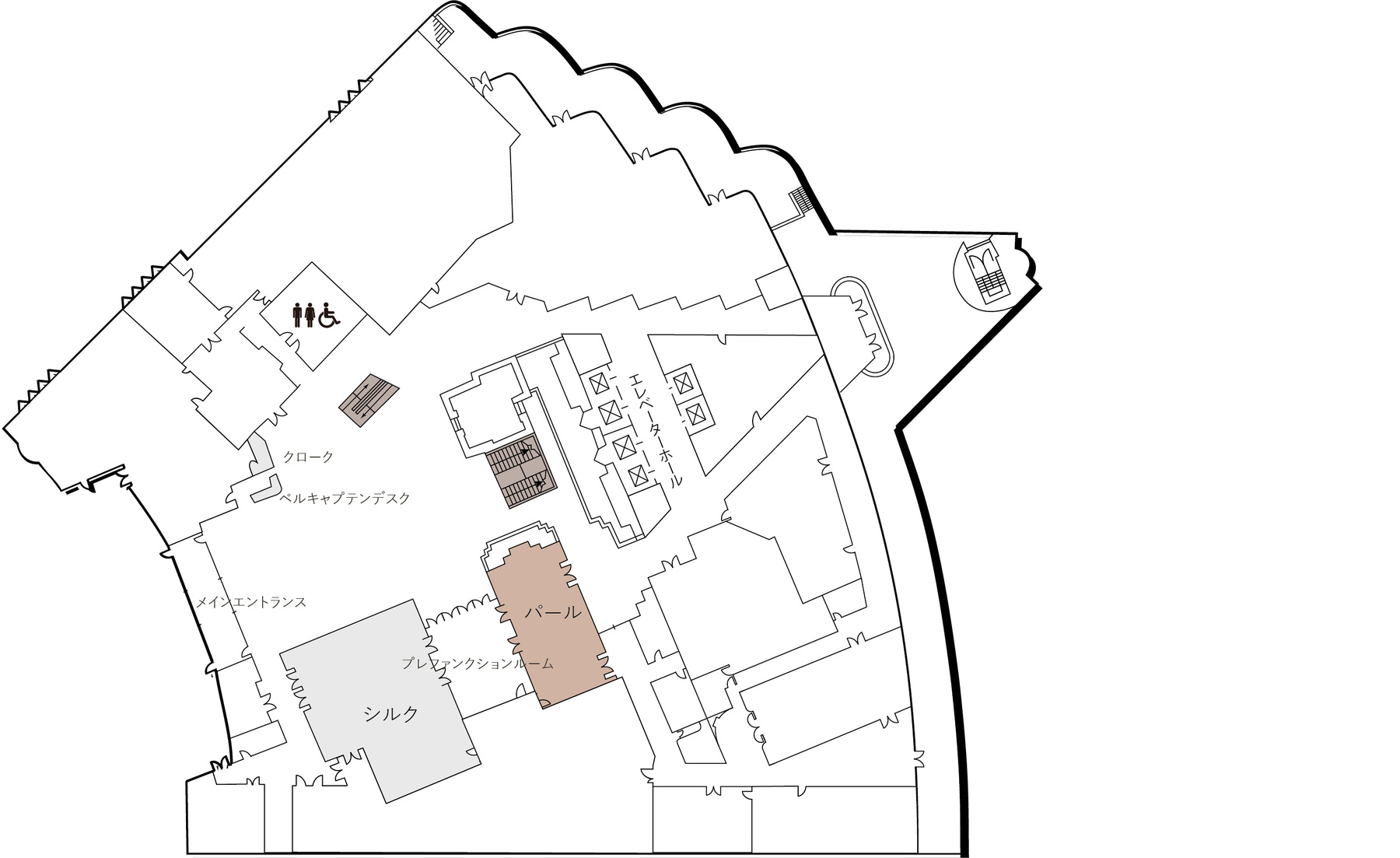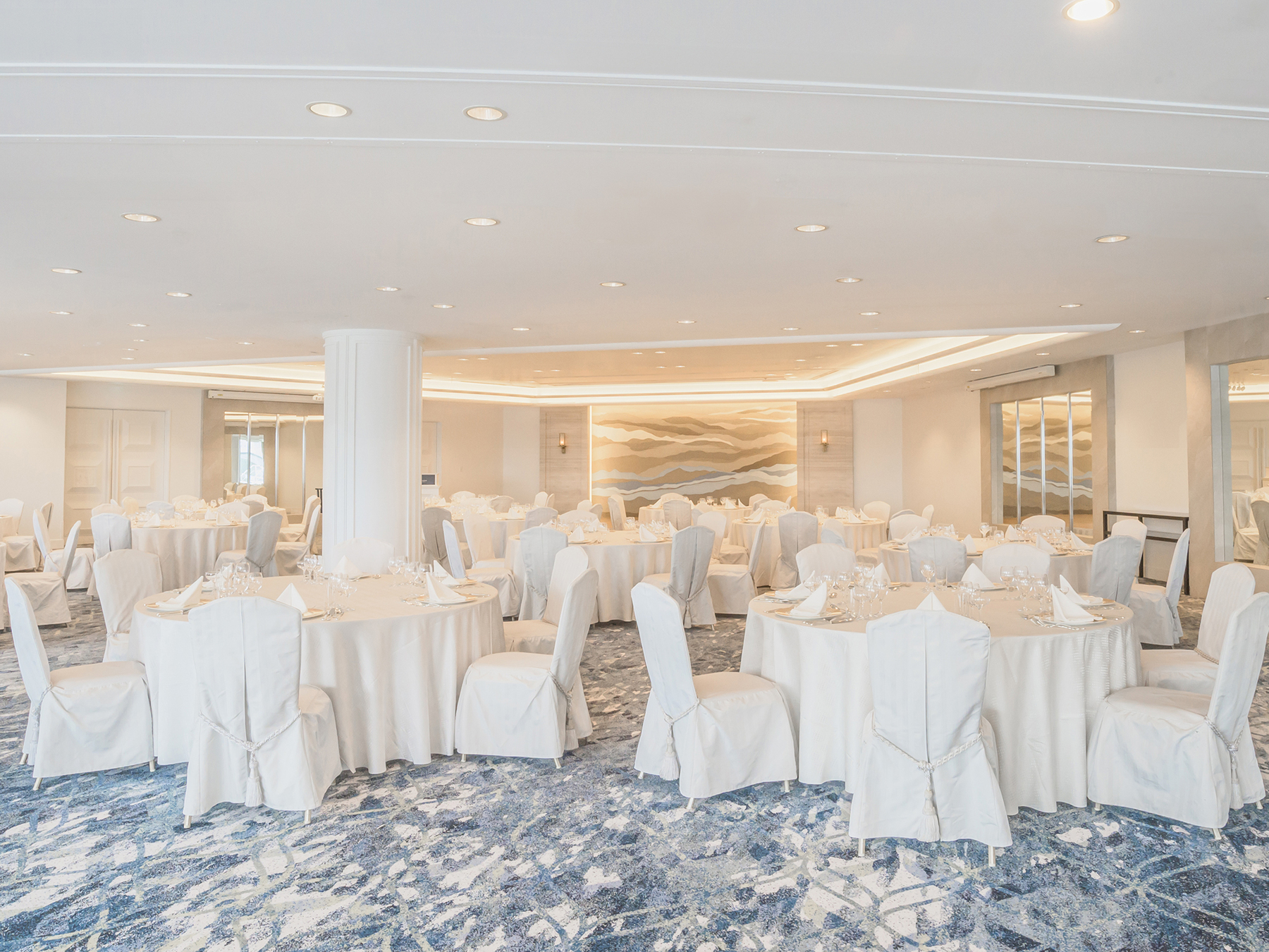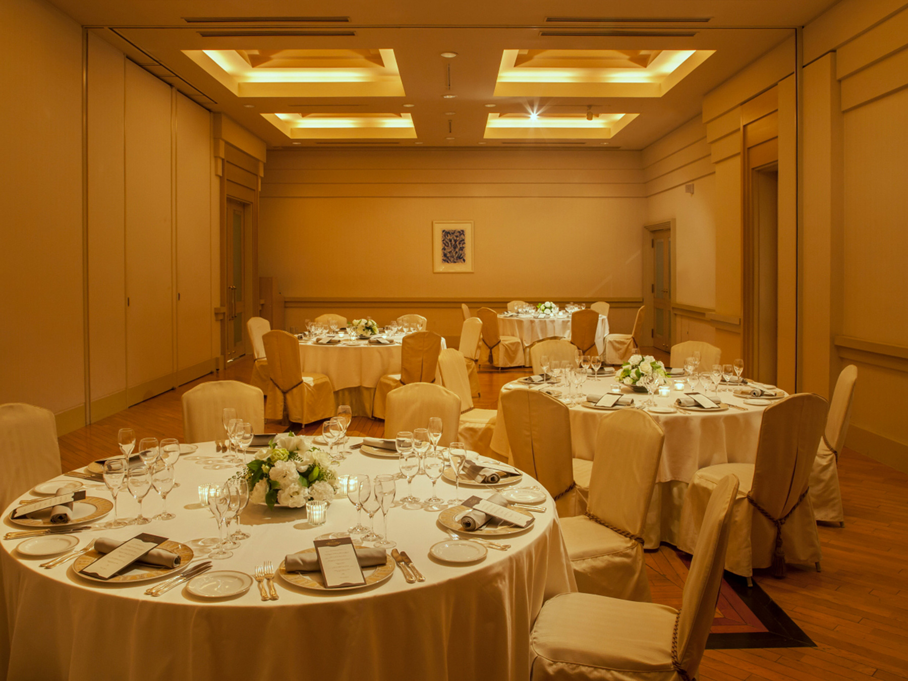ホテル随一の広さを誇るボールルーム。晩餐会、展示会、国際会議、周年パーティ、婚礼など、700名様までのあらゆる用途にご利用いただけます。規模や目的に応じ、3室に分割してご利用いただけるうえ、隣接する横浜国際会議平和場との併用でさらに大型のパーティーやイベントにも対応することが可能です。ヨーロッパの舞踏会場を思い起こさせる豪奢な会場で、心に残るひとときをお過ごしください。