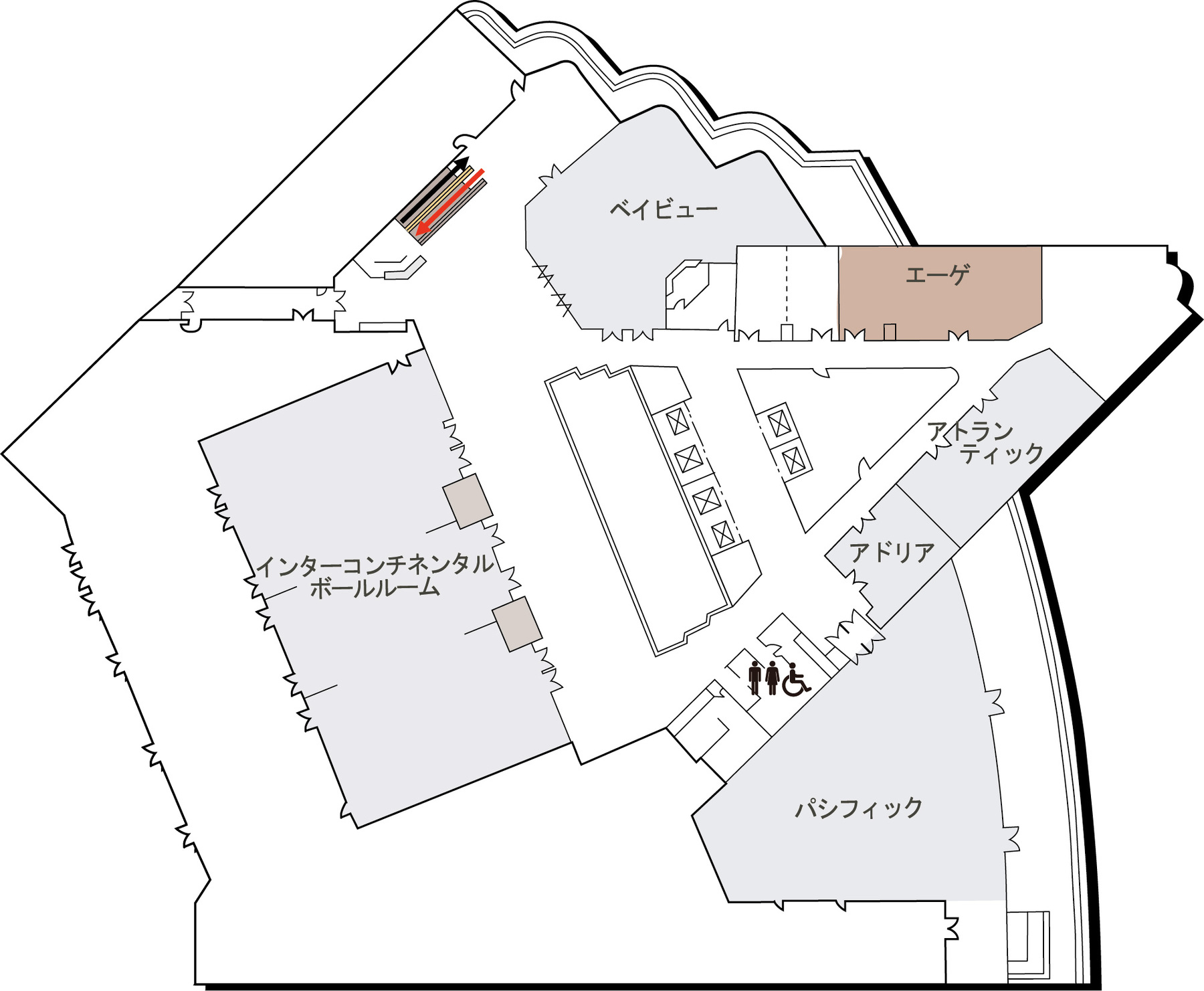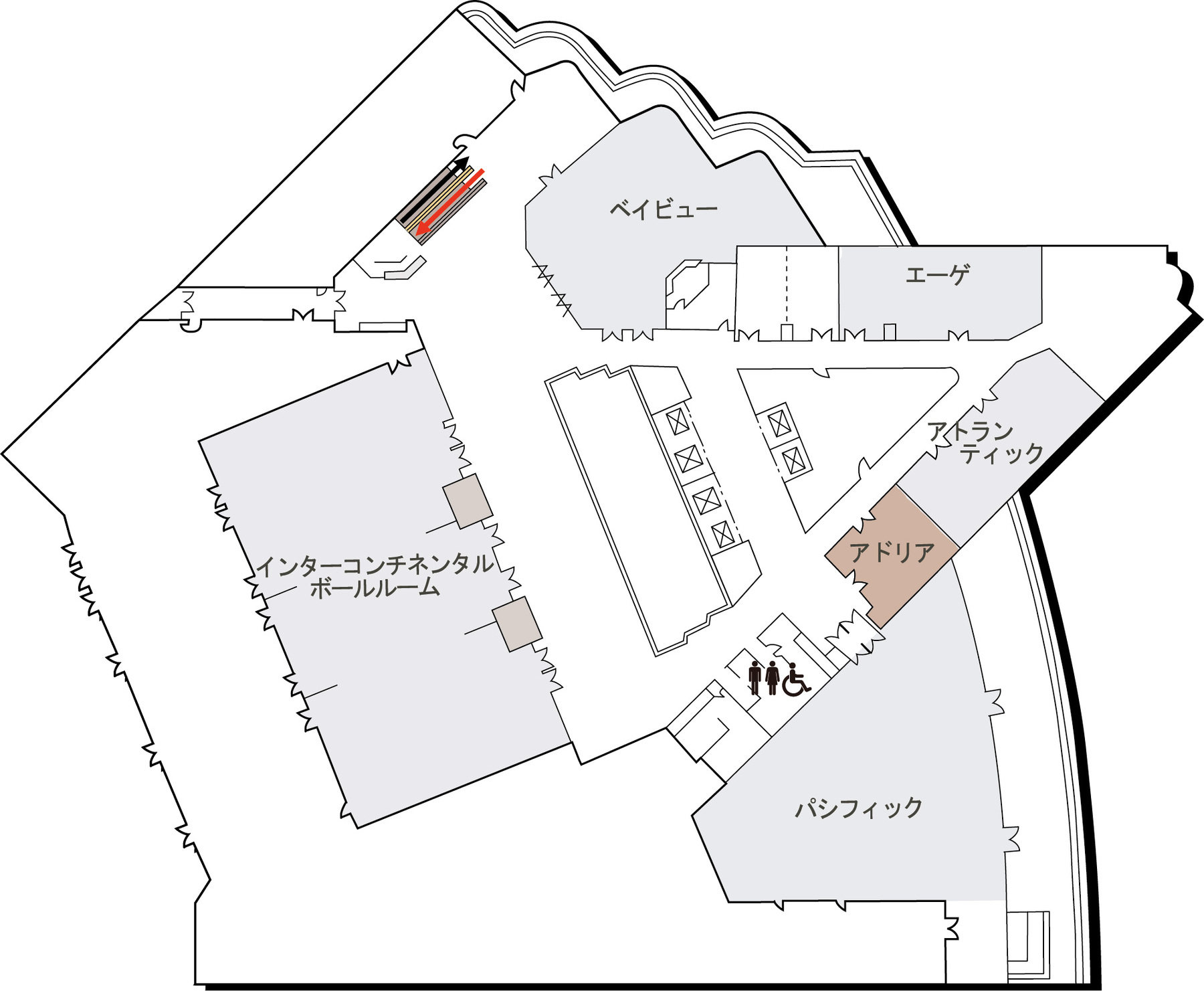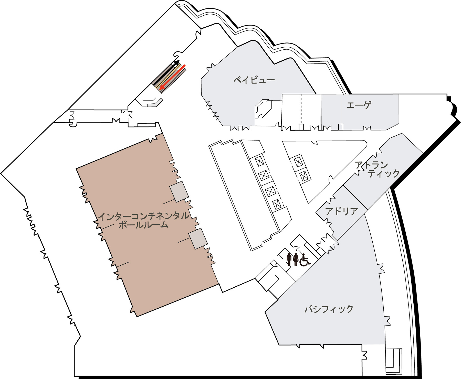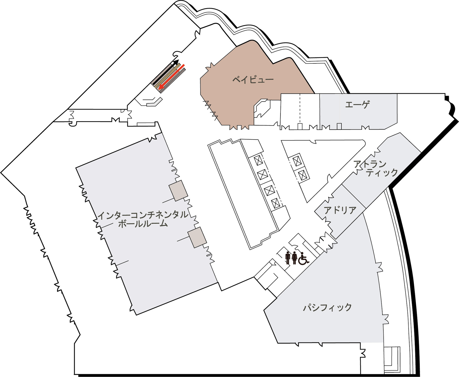 ホテル随一の広さを誇るボールルーム。晩餐会、展示会、国際会議、周年パーティ、婚礼など、700名様までのあらゆる用途にご利用いただけます。規模や目的に応じ、3室に分割してご利用いただけるうえ、隣接する横浜国際会議平和場との併用でさらに大型のパーティーやイベントにも対応することが可能です。ヨーロッパの舞踏会場を思い起こさせる豪奢な会場で、心に残るひとときをお過ごしください。