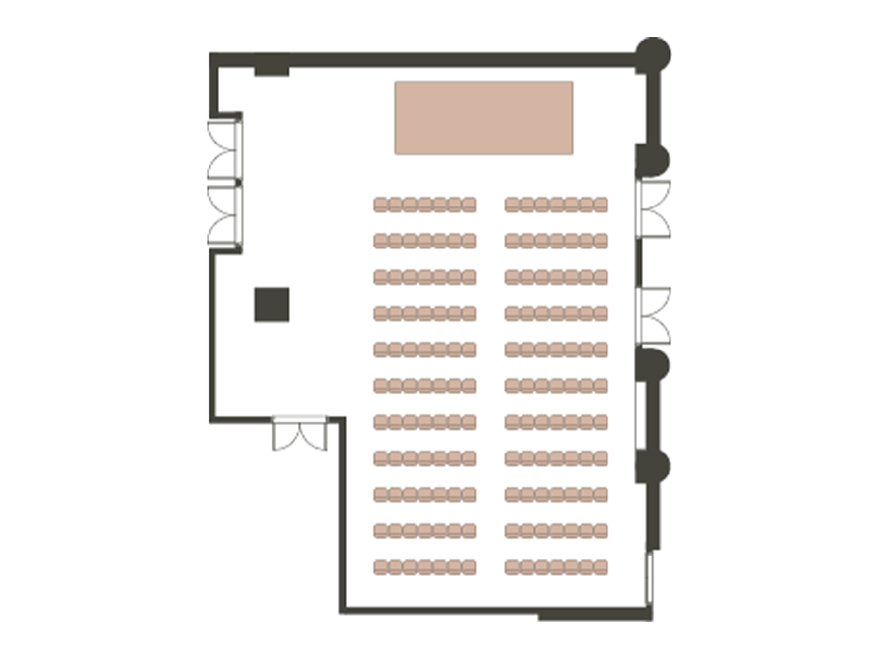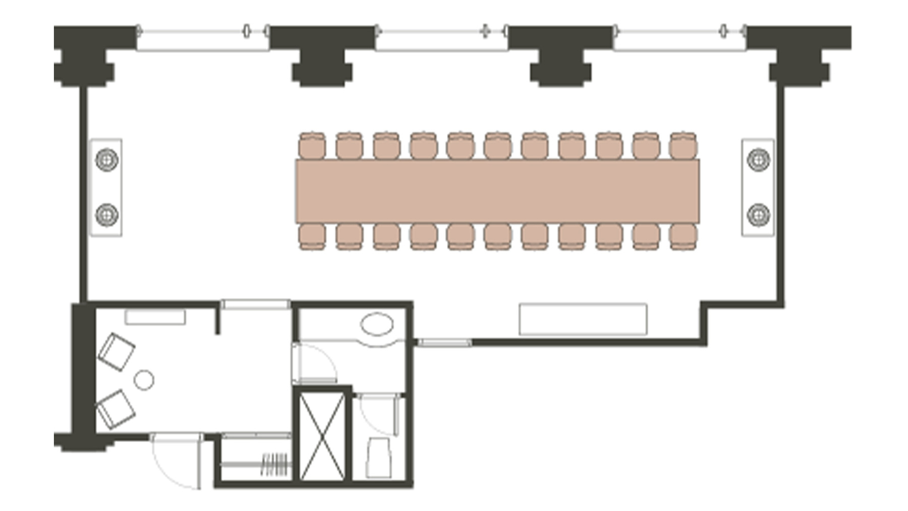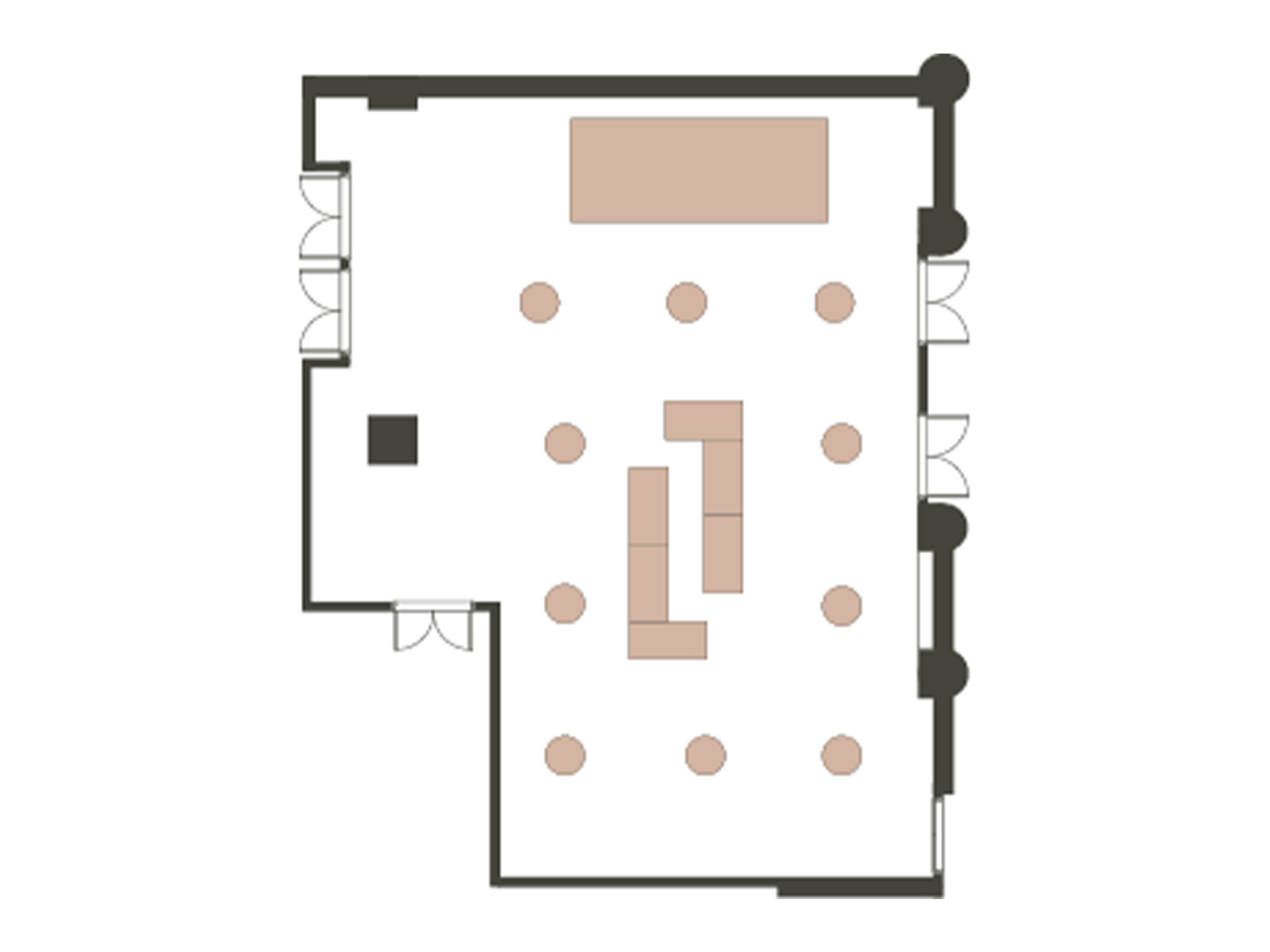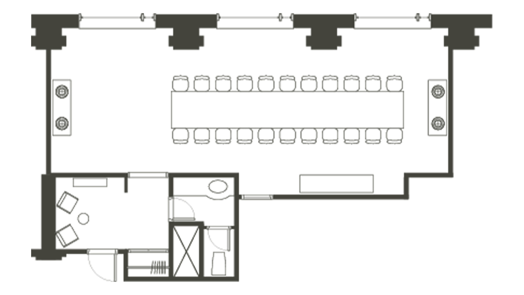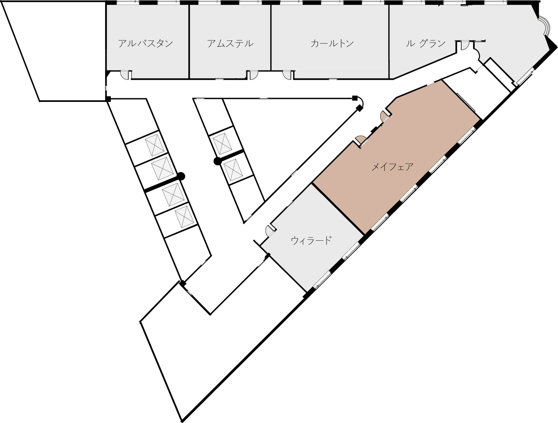 モノトーンを基調としたシックなインテリアとライティングが魅力の会場です。小規模の会議や宴会の控室、アットホームな雰囲気のパーティーなどに幅広くご利用いただけます。