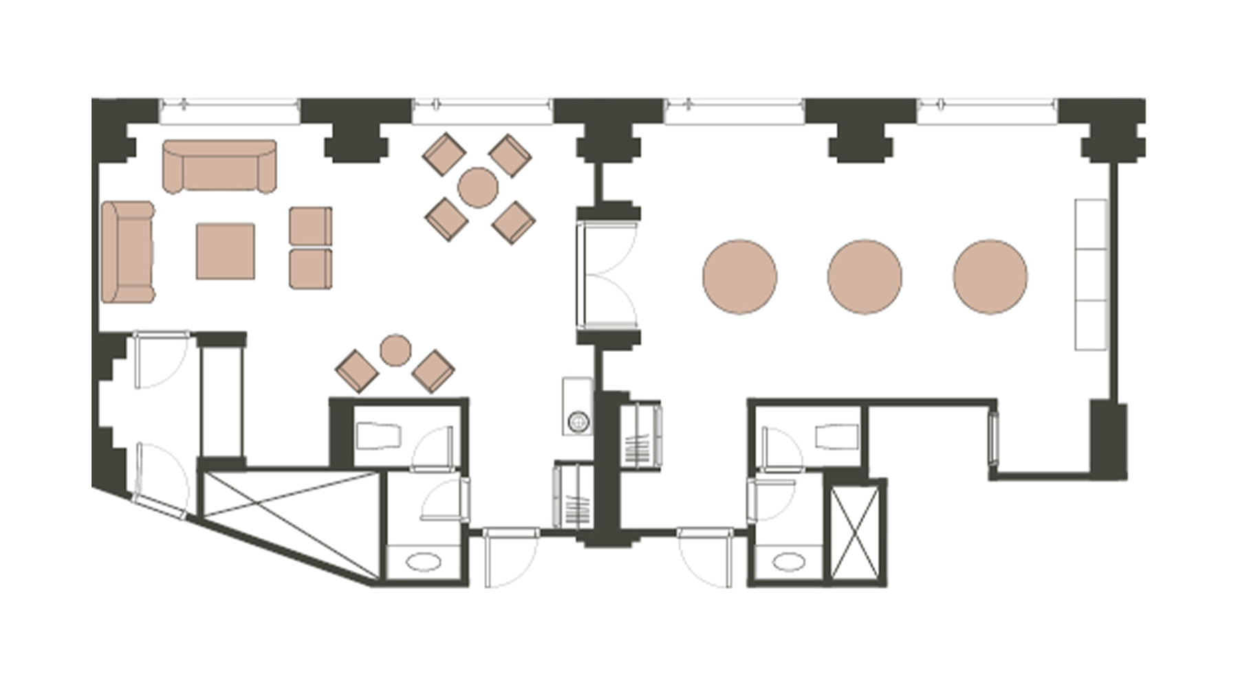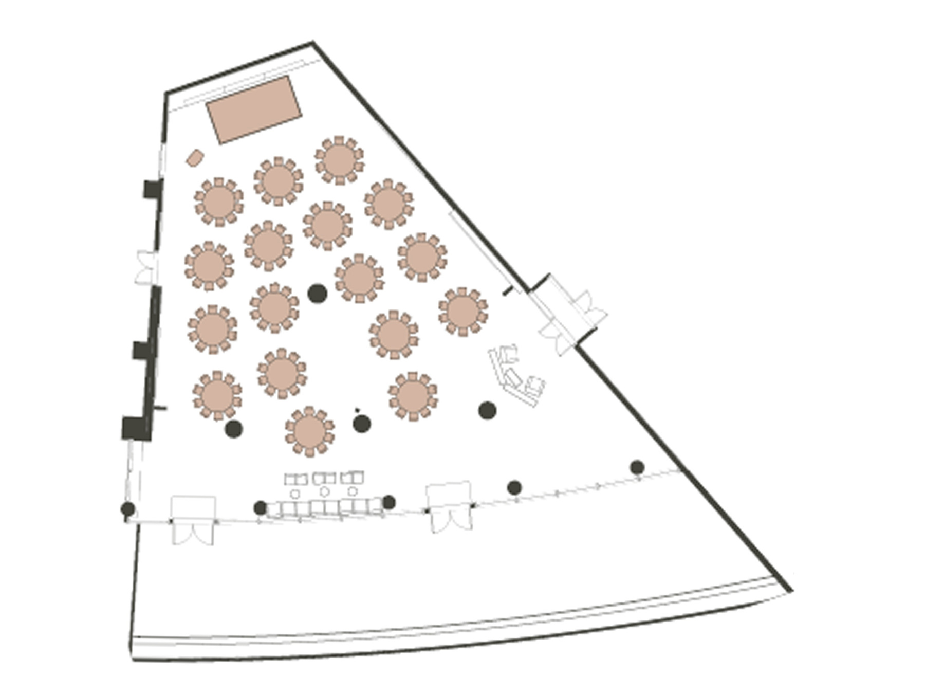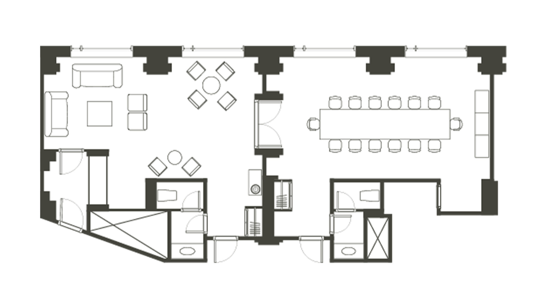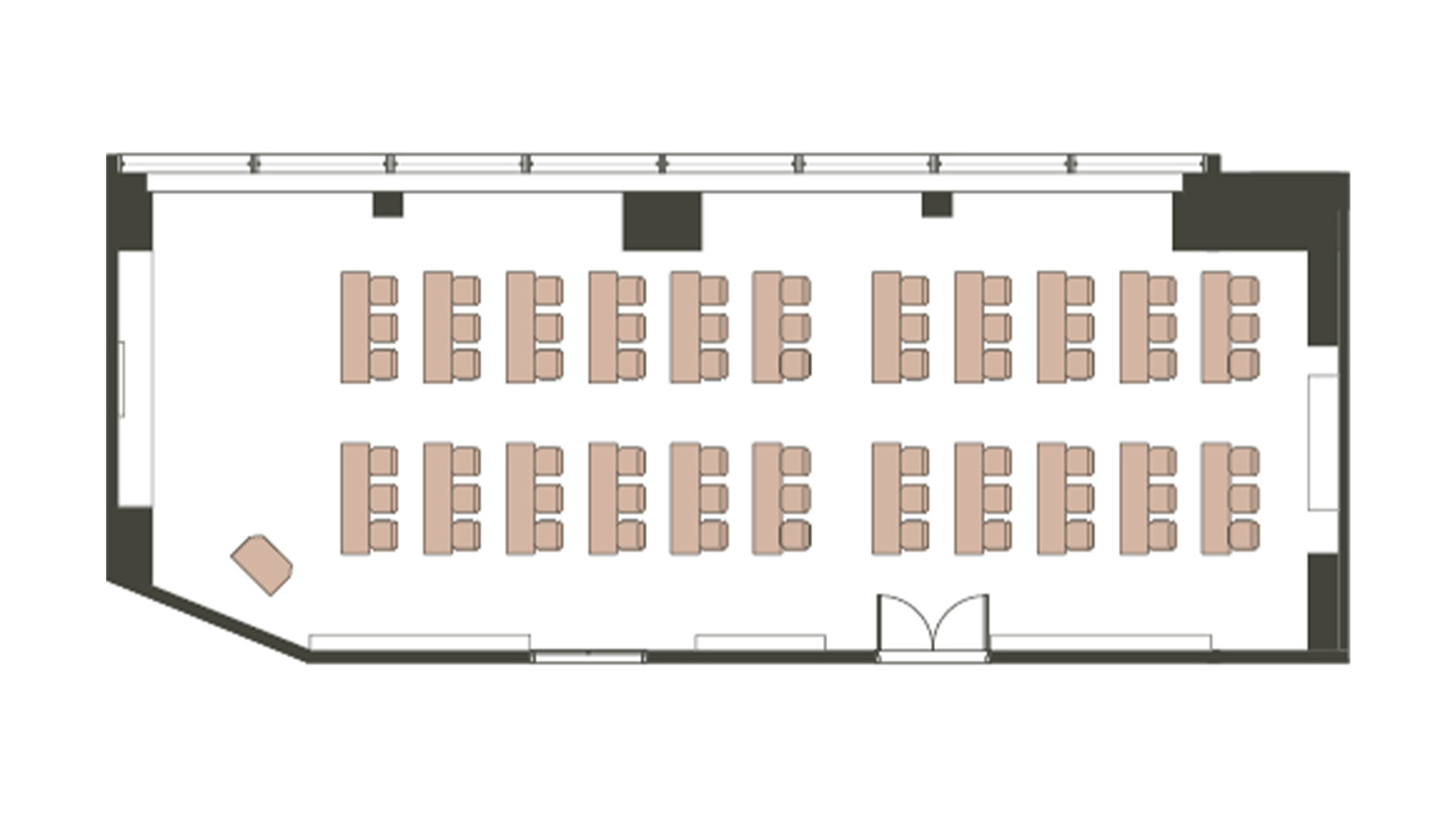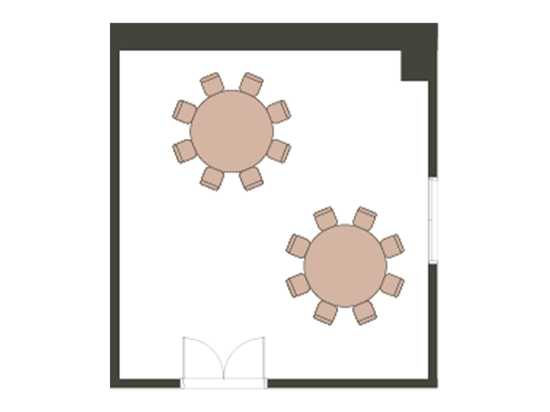 モノトーンを基調としたシックなインテリアとライティングが魅力の会場です。小規模の会議や宴会の控室、アットホームな雰囲気のパーティーなどに幅広くご利用いただけます。