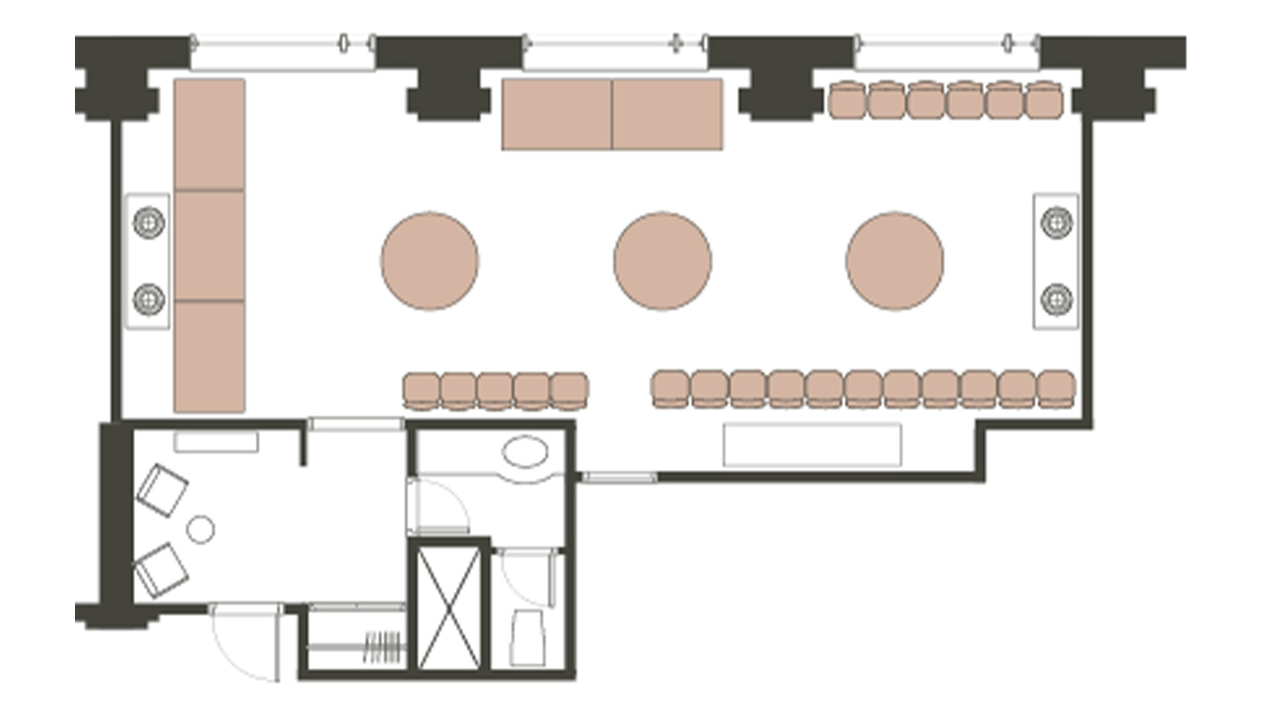 英国の書斎を思わせる落ち着いた雰囲気の中、親しい方々との語らいのひとときをお過ごしいただけます。バーカウンターとラウンジスペースを備え、プライベート感のあるパーティーが叶います。ピアノなどのライブ演奏も可能です。