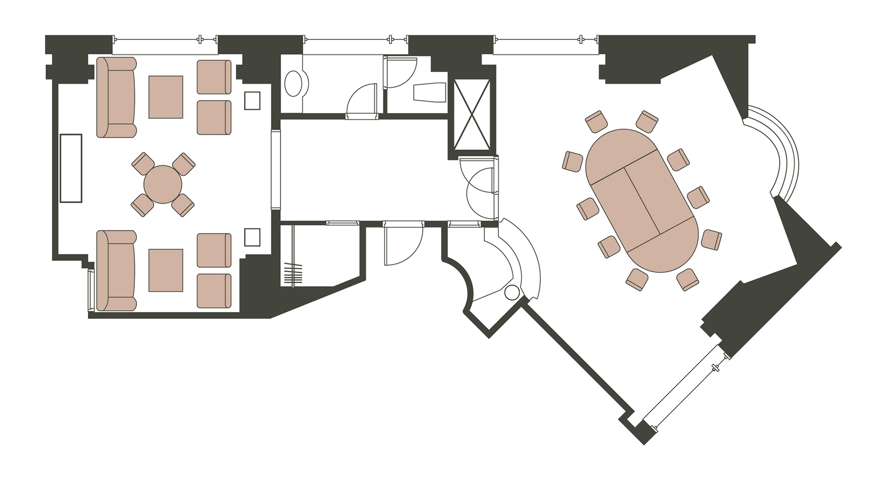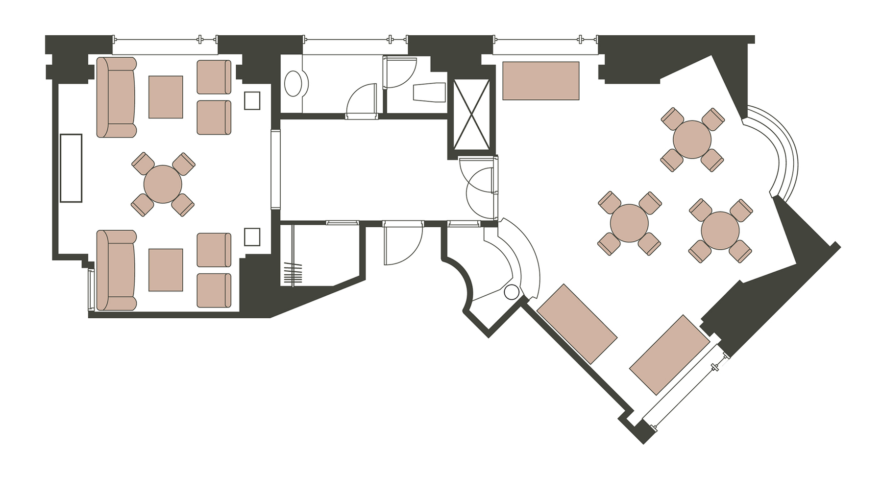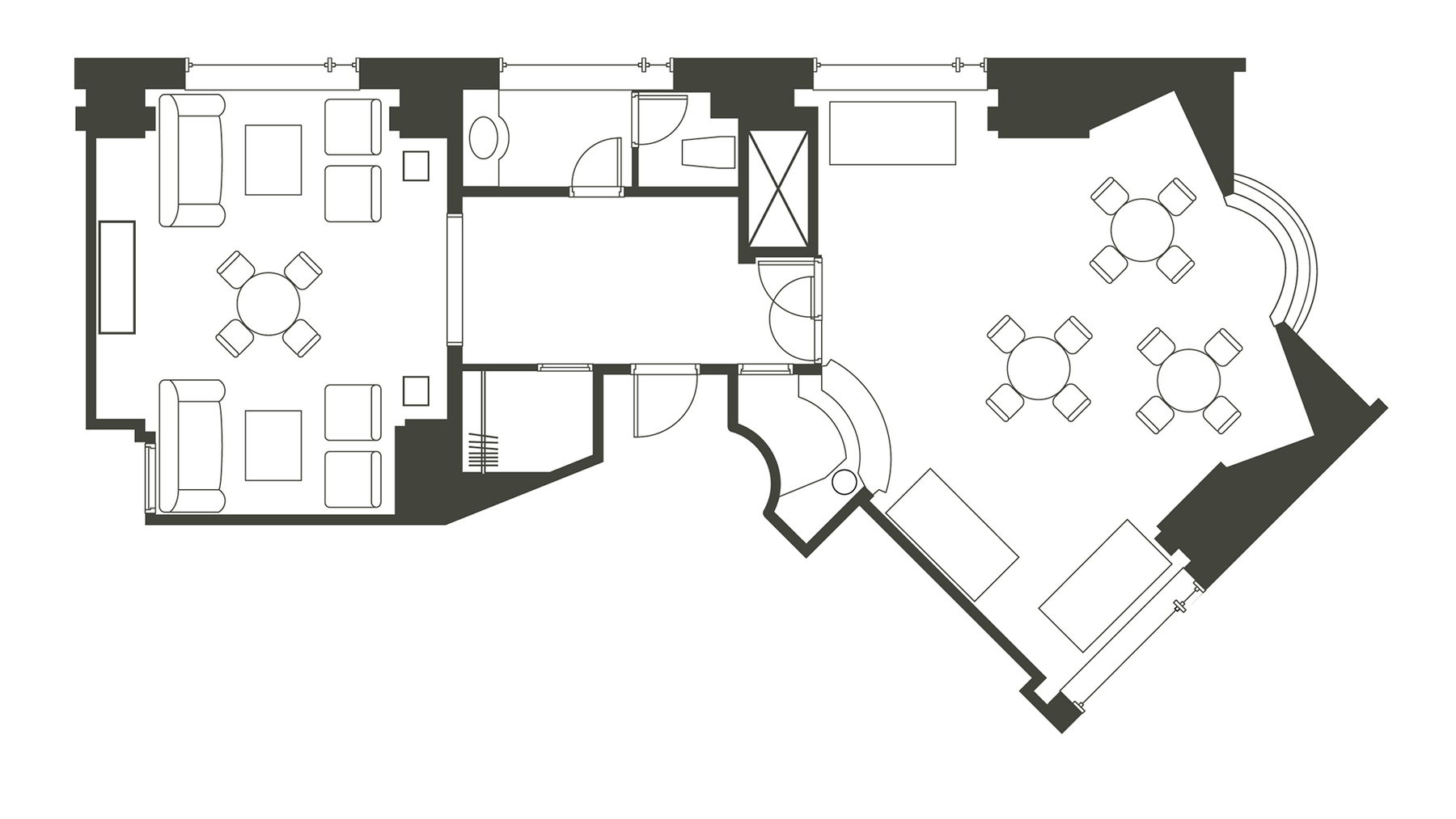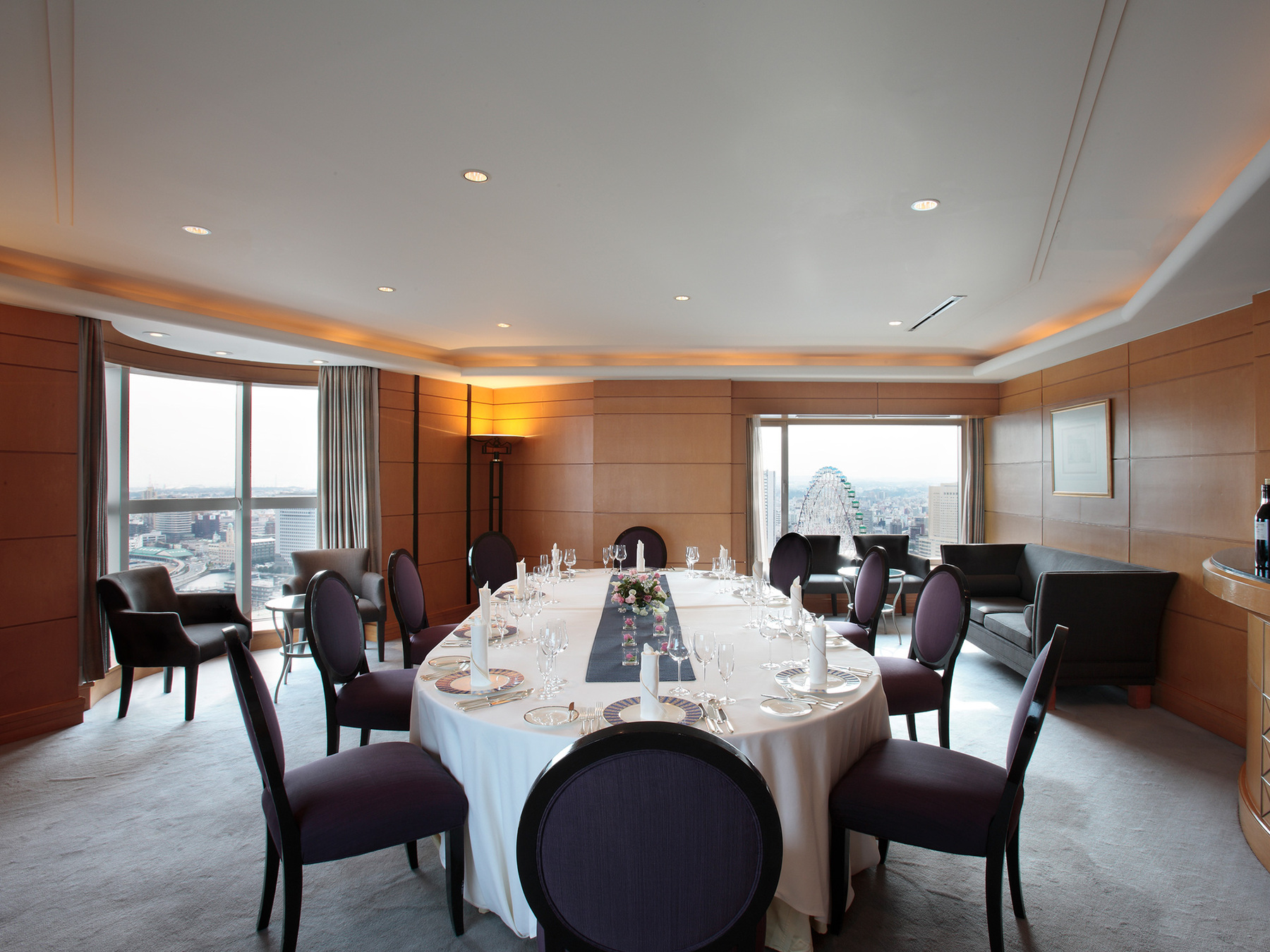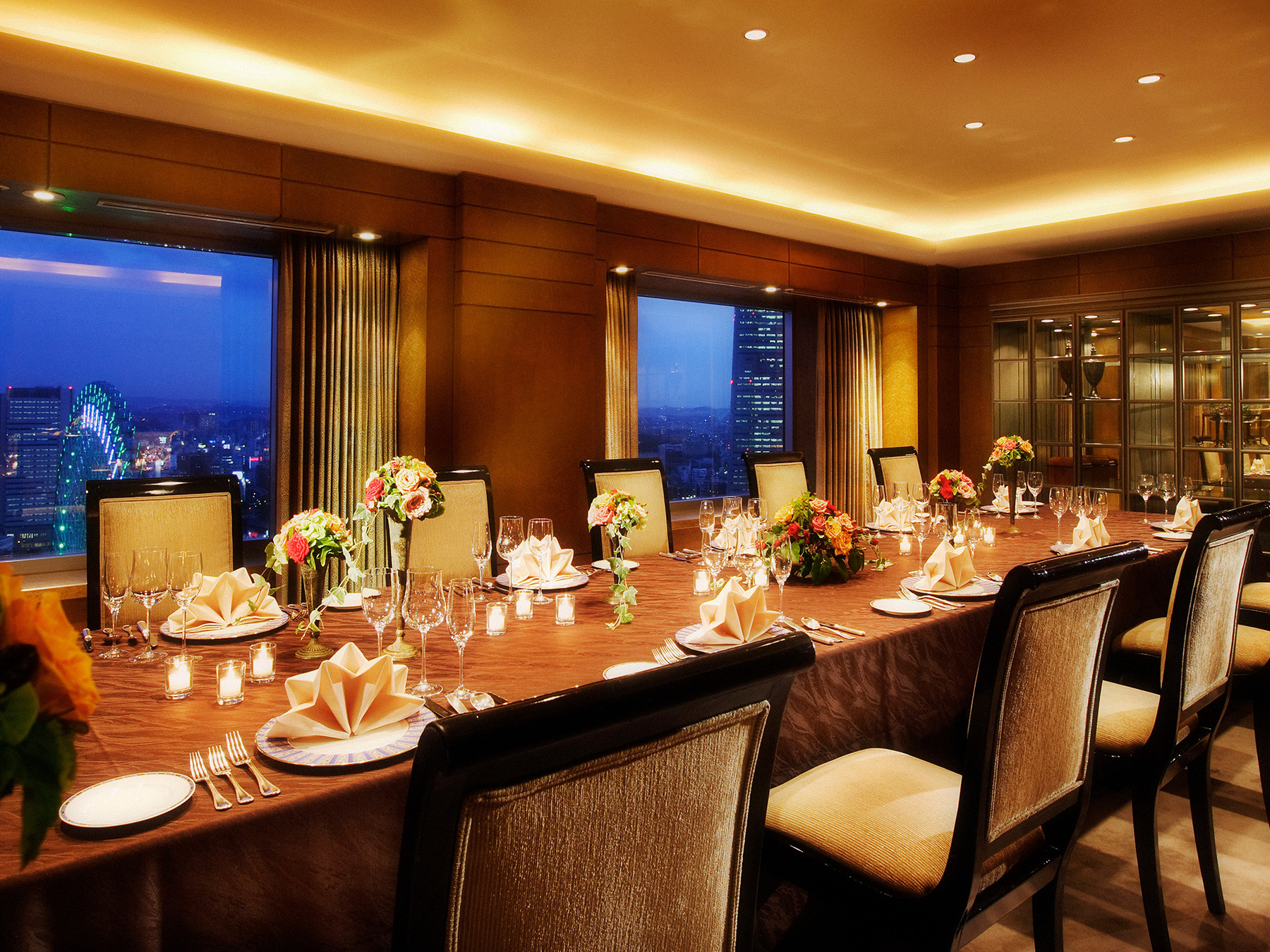 格調高い調度品をしつらえたダイニングルームとリビングルームを兼ね備えた、贅沢なプライベートスペースです。リビングルームにはバーコーナーをご用意しております。大観覧車などみなとみらいの煌めく街夜景を眺めながら優雅にそして和やかに、大切なひとときをお過ごしください。