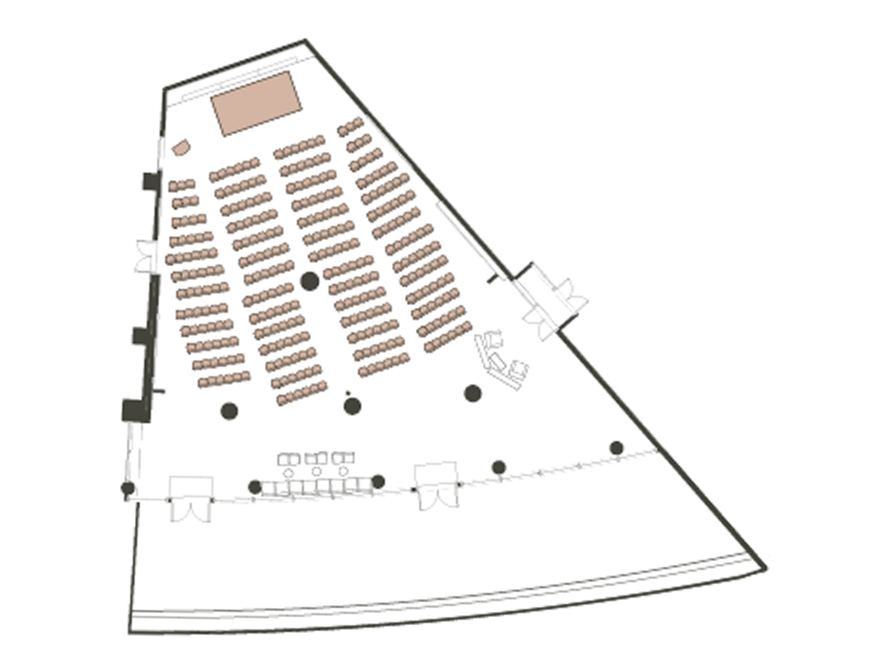 フローリングのアットホームな雰囲気の会場です。隣接する「プレファンクションルーム」と「シルク」の3つの空間を複合的に利用し、レセプションから会議、宴席まで幅広くご利用いただけます。