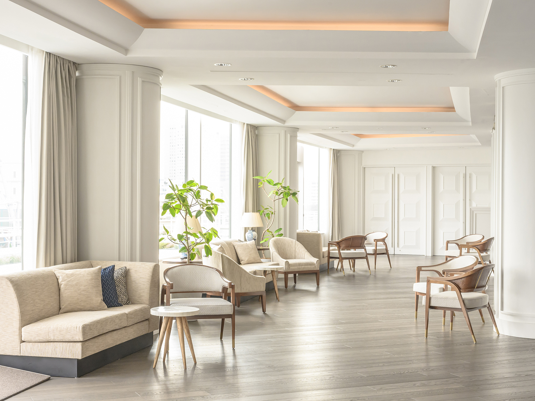 パシフィコ横浜会議センター6階に位置するラウンジは、二次会などカジュアルなパーティーにもご利用いただけます。みなとみらいの街並みや横浜港の景色が眼前に広がり、夜はライトアップされたベイブリッジや観覧車などのイルミネーションに煌めく夜景を楽しみながら、和やかなひとときをお過ごしいただけます。