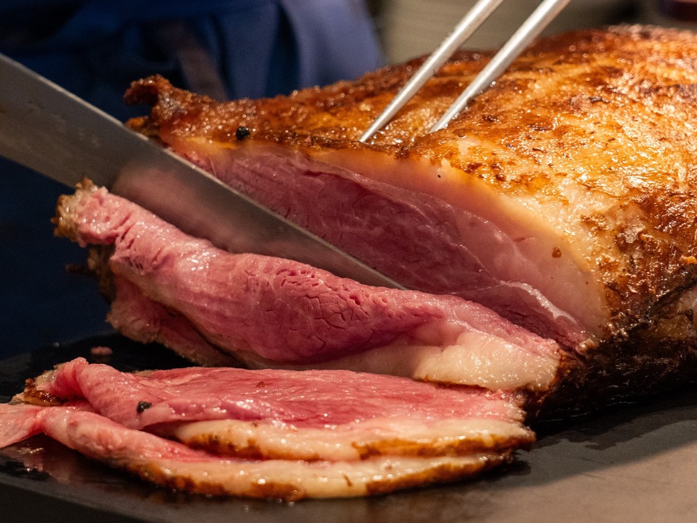 「オーシャンテラス」自慢のチャコールオーブンでじっくりと焼くジューシーなローストビーフは、ライブ感溢れるオープンキッチンよりご注文を受けてからカットして提供いたします。