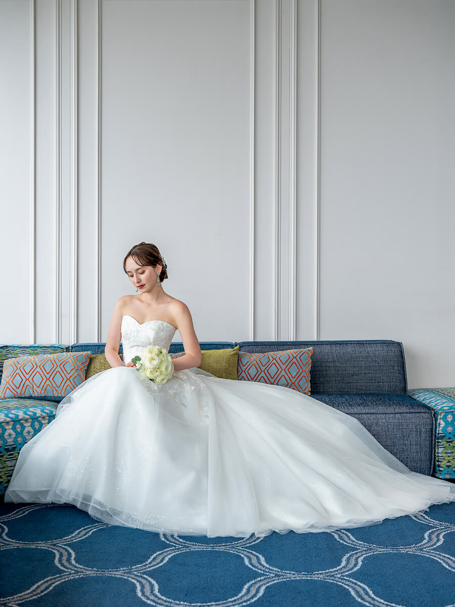 人生でもっとも幸せな一日を迎える花嫁の願いを叶えるために、丁寧に創り上げられたコスチュームコレクション。自然光や照明の明るさ、調度品の色調など、会場の全てを知るプロのドレススタイリストが「運命の1着」と呼ぶにふさわしい、ウエディングドレスをご提案いたします。