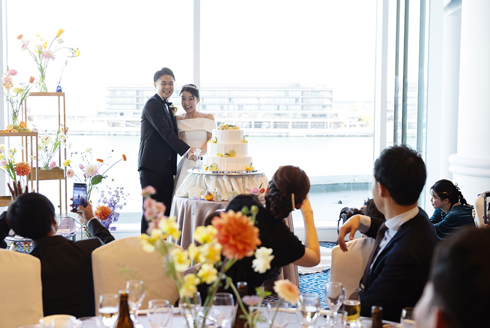 人生という大海原へ出航していく「船」をモチーフにしたチャペルで永遠の愛を誓う挙式、目の前にキラキラと輝く青い海が広がる会場でのパーティは、おふたりの今までの人生を表すようなぴったりの場所でした。