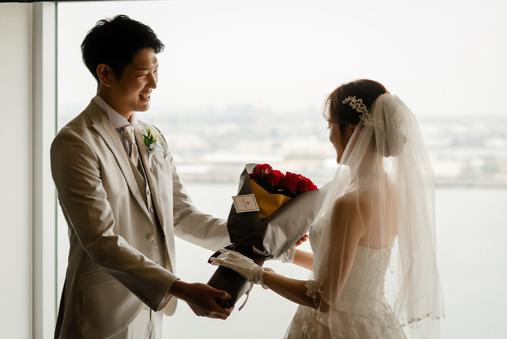 当ホテルの対岸に建つ「インターコンチネンタル横浜pier8」でプロポーズの日を過ごしていただいたことが、当ホテルとのご縁となったおふたり。